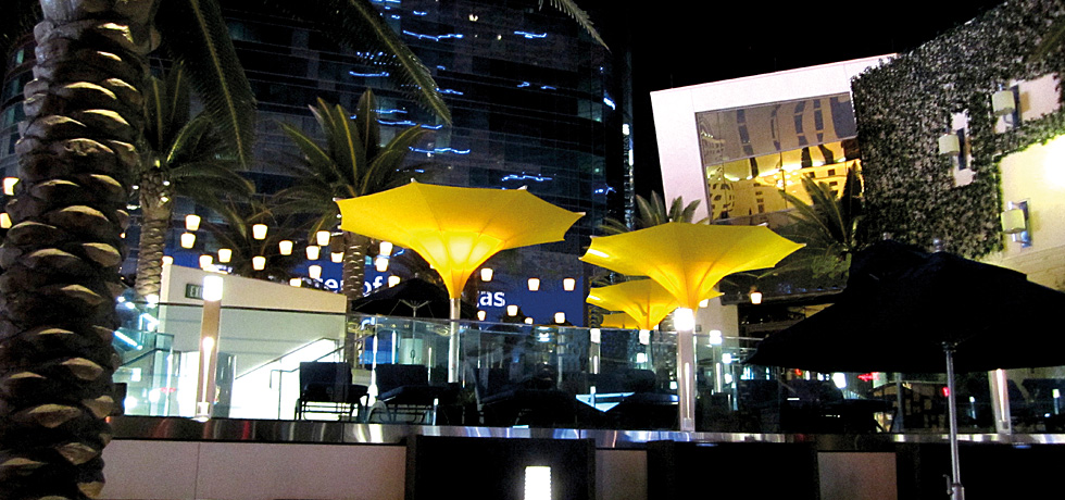 THE COSMOPOLITAN IS HOME TO THE 6TH TALLEST BUILDING IN LAS VEGAS AND IS ARCHITECTURAL ACHIEVEMENT. SO, IT MAKES SENSE THAT IT WOULD BE ADORNED BY THE MOST AMAZING SHADING STRUCTURES AVAILABLE. WHETHER PATRONS ARE RELAXING BY ONE OF THE COSMOPOLITAN'S THREE DIFFERENT TYPES OF POOLS, ENJOYING FRESH SUSHI AT THE COSMOPOLITAN'S OWN BLUE RIBBON SUSHI BAR & GRILL, OR COMING TO DANCE THE NIGHT AWAY AT THE MARQUEE NIGHTCLUB, THEY WILL BE AMAZED BY THE SIGHT OF ONE OF OUR THIRTY TULIP UMBRELLAS THAT COMPLIMENT THE COSMOPOLITAN'S UNRIVALED BEAUTY.